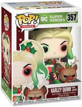 This DC Holiday Harley Quinn Pop! Vinyl Figure with Helper Buddy measures approximately 3 3/4-inches tall. Comes packaged in a window display box.