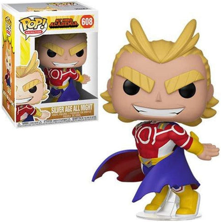 This My Hero Academia All Might Silver Age Pop! Vinyl Figure measures approximately 3 3/4-inches tall. Comes packaged in a window display box. Ages 3 and up.